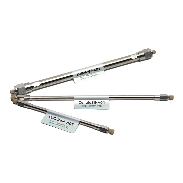 Cellulosil-B01은 Cellachrom에서 개발한 셀룰로오스 기반의 다당류 키랄 컬럼입니다. 다당류의 하이드록시기를 3,5-dimethylphenyl 작용기로 유도체화한 컬럼은 넓은 영역의 키랄 화합물을 분리하는 데 사용되며, 특히, halide / ether / ester / ketone / sulfoxide / alchohol / amine / acid / amide / aminoalcohol 등의 작용기를 포함하는 라세미화합물 분리에 효율적이며, 500종류의 라세미체의 분리를 시도한 결과 80%의 화합물에 대해서 높은 분리능을 제공하였습니다 (Chemical review 2016, 1094).